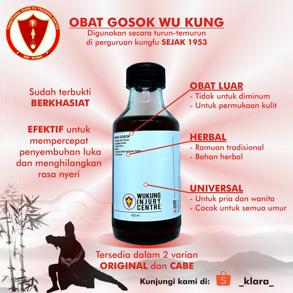 Obat Gosok/ Arak Gosok ORIGINAL WUKUNG Botol Beling 120ml Obat Luka Memar Lebam Pukul