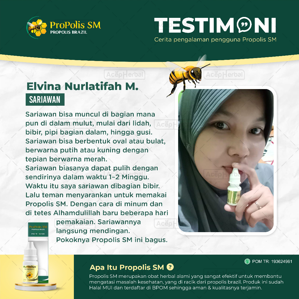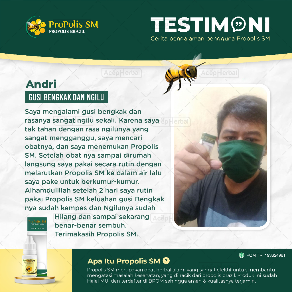 Obat Gusi Berdarah, Bengkak, Radang, Luka, Sariawan, Bau Mulut, Radang Amandel, Sakit Gigi Berlubang, Benjolan Lidah, Gusi, Batuk, Sakit Tenggorokan, Kelenjar Getah Bening, Lipoma, Skin Tag, Kutil, Panu, Kurao - Propolis SM