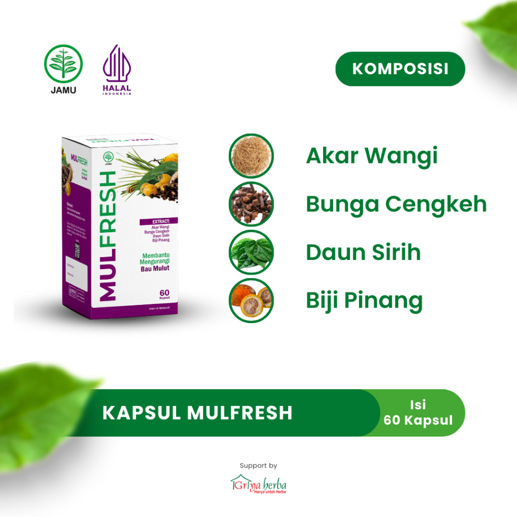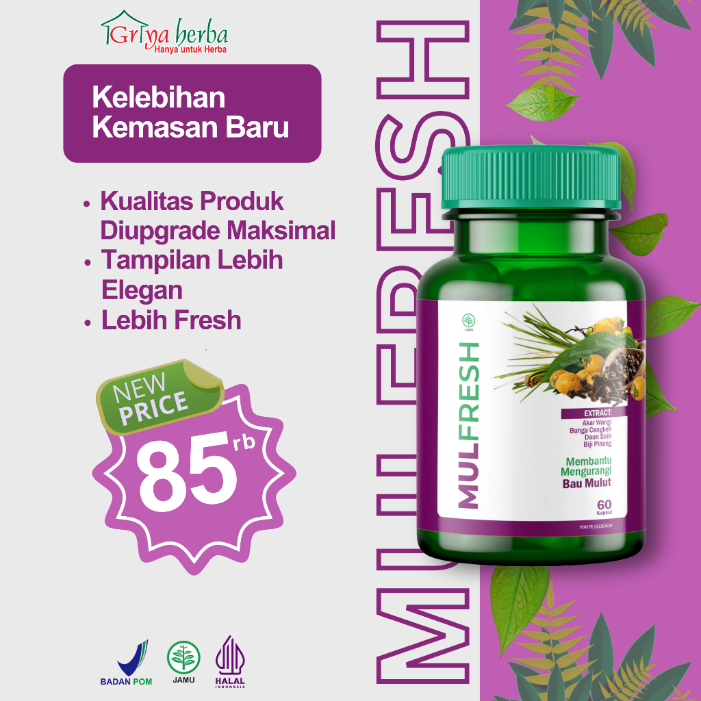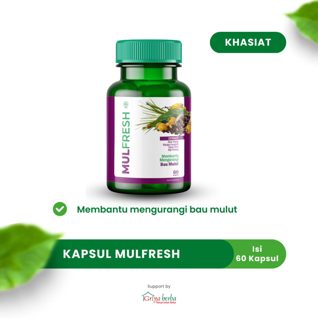 Obat Herbal Ampuh Atasi Bau Mulut Tidak Sedap Alami Herbal Mulfresh Original Griya Herba 60 Kapsul halal
