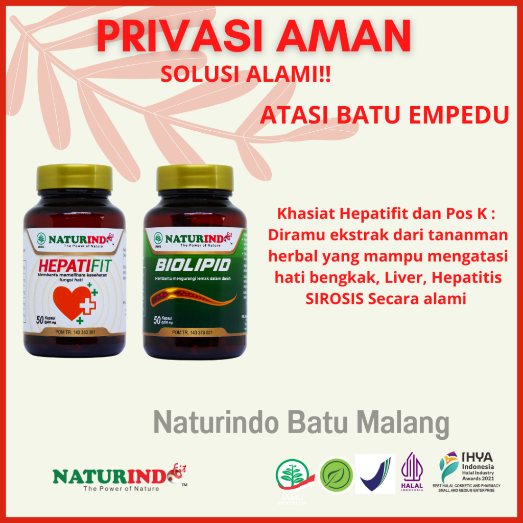 NATURINDO HEPATIFIT Obat Herbal Fungsi Hati Liver Hepatitis Fibrosis Sirosis Gagal Hati Fatty Liver Perlemakan Hati Hepatomegali Kolestasis Hemokromatosis Autoimmune Hepatitis Saluran Empedu Batu Empedu Kanker Hati Tumor Liver Bengkak Biduran Gatal BPOM
