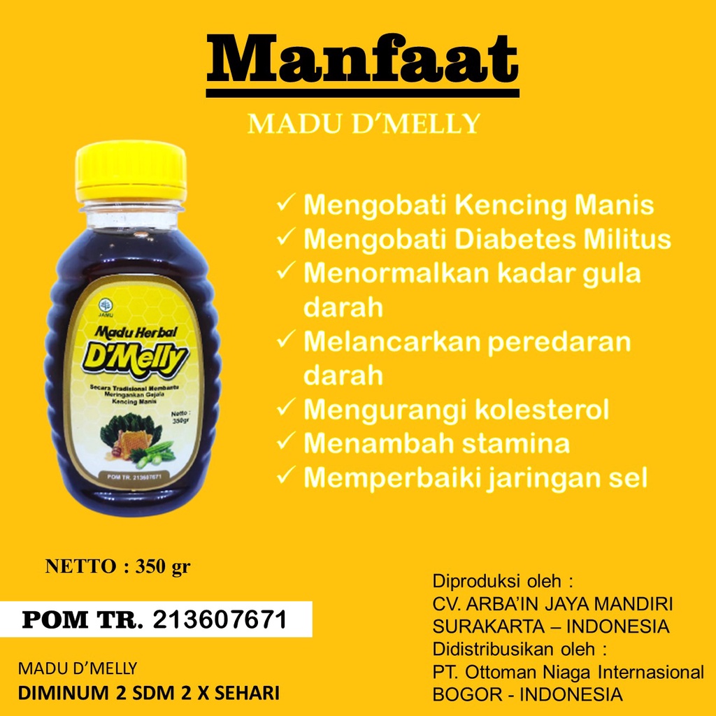 Obat Herbal Gula Darah Kencing Manis Madu D'MELLY Sudah BPOM Obat Diabet Diabetes
