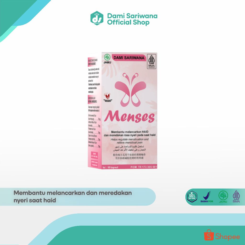 Menses Jamu Herbal 18 Kapsul Dami Sariwana Suplemen Alami Wanita Obat Haid Herbal Pink Pelancar Siklus Haid, Mengurangi Kram, Pereda Nyeri, Menjaga Kesehatan Reproduksi, dan Gangguan Menstruasi BPOM HALAL