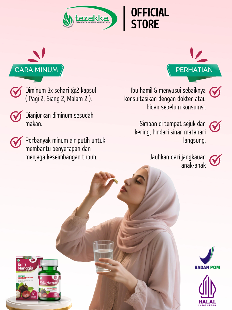 TAZAKKA Ekstrak Kapsul Kulit Manggis Kering 60 Suplemen Kesehatan Tubuh Obat Imun Antioksidan Tinggi