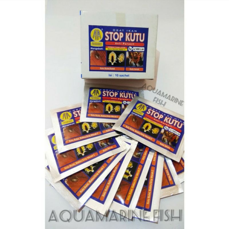 STOP KUTU Obat Anti Kutu Ikan dan Parasit Ikan membasmi Kutu Bulat Jarum Argulus kutu insang Lernaea Anchor worm Sirip Merah 5gr ampuh seperti dimilin kutuklin Aquamarine Fish