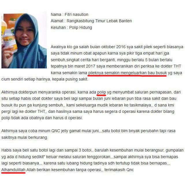 Obat Polip Hidung, Hidung Terumbat, Hidung Bau Busuk, Sinusitis, Rhinitis Herbal Qnc Jelly Gamat ORI