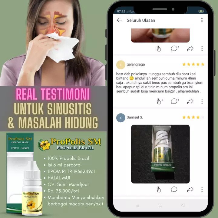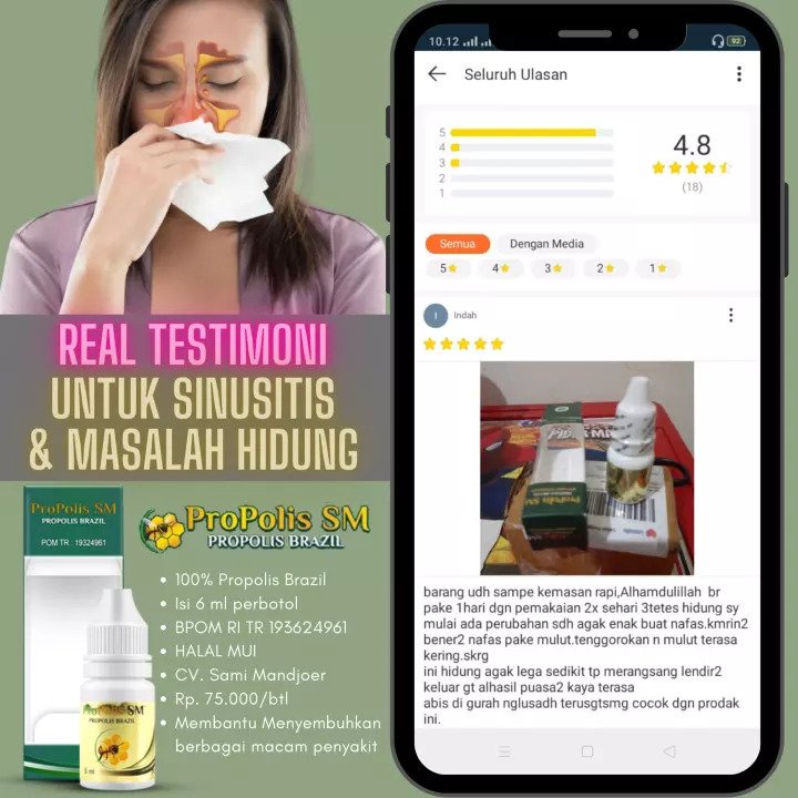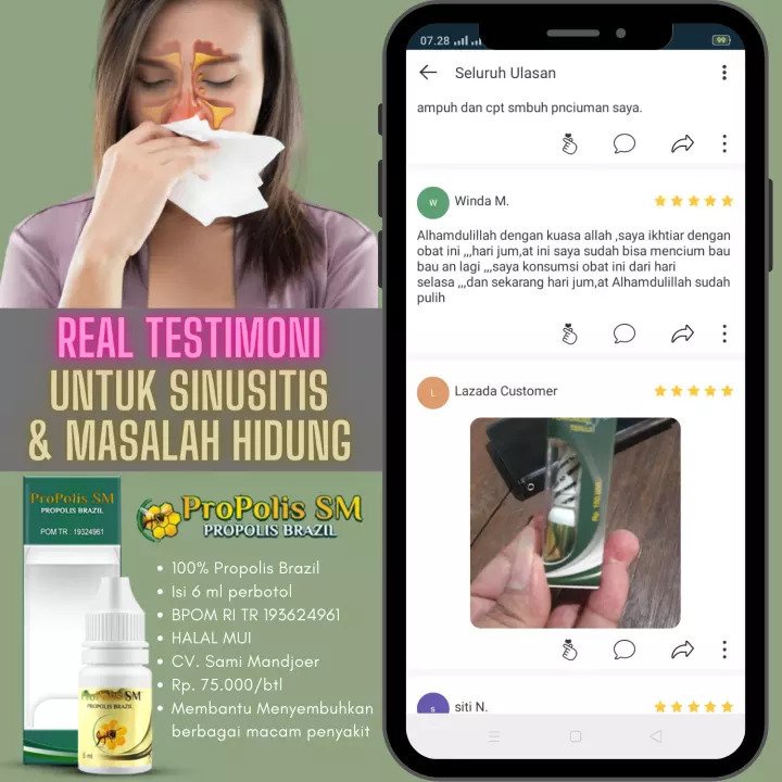 Obat ProPolis SM 6ml - Obat Sinusitis, Obat Herbal Sinusitis, Sinusitis Menahun, Obat Pilek Menahun, Obat Hidung Tersumbat, Obat Hidung Bau Busuk, Benjolan di Hidung, Obat Polip Hidung Anak Dewasa