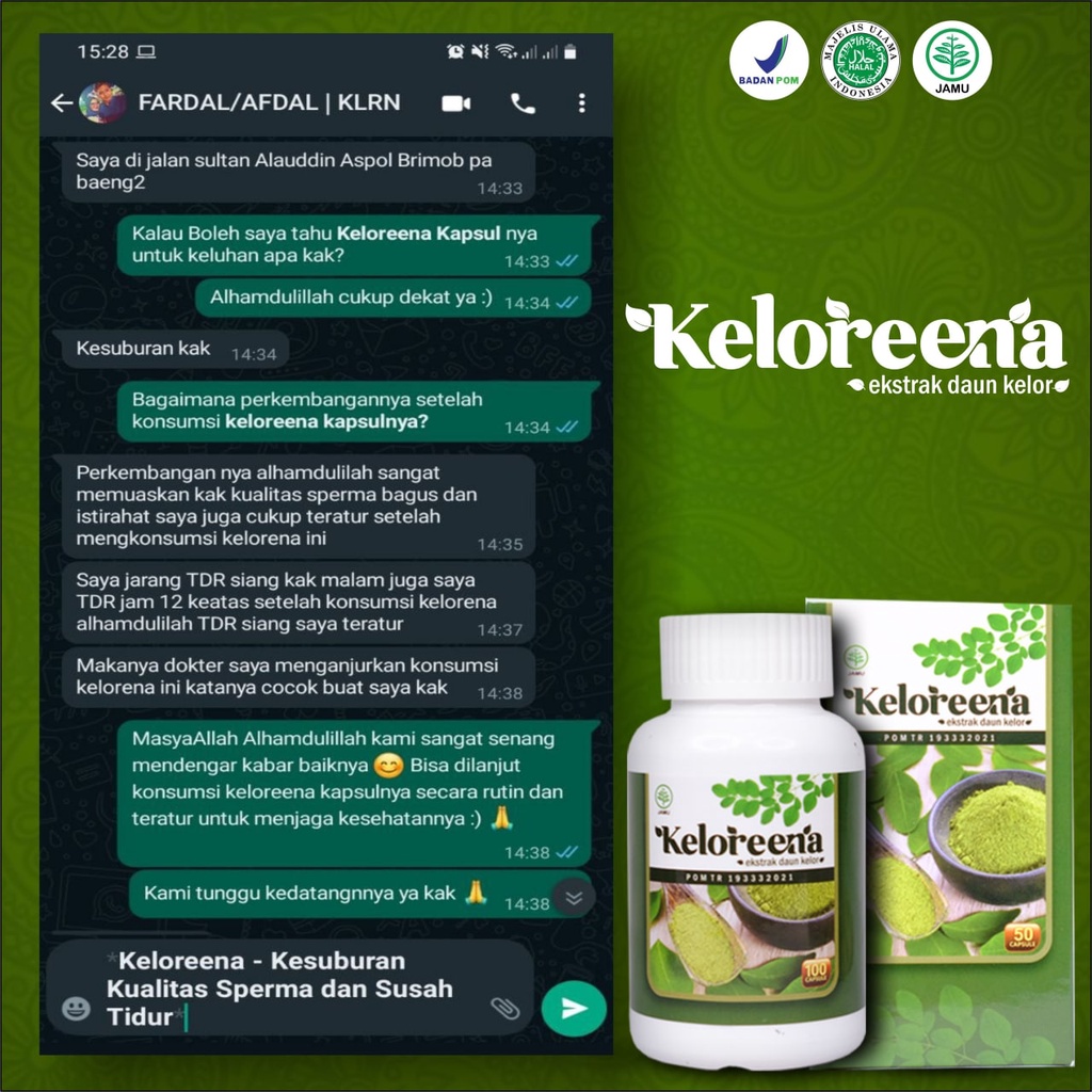 Obat Promil Pria Penyubur Pengental Penambah Sperma Pria yg Buat Promil Murah Keloreena 100% Original Isi 50 & 100 Kapsul