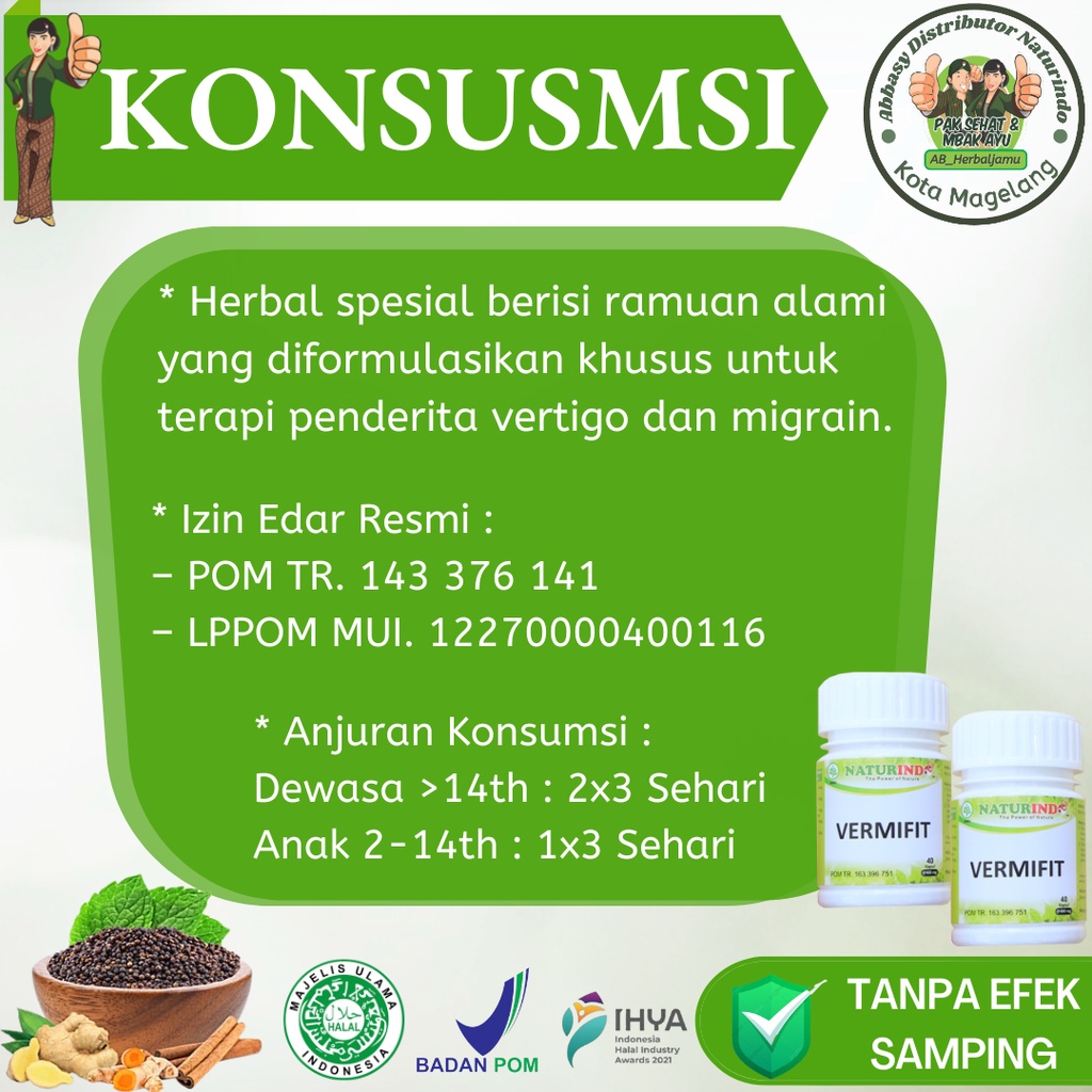 Obat Vertigo Sakit Kepala Berat Sebelah Migrain Migren Berputar Pusing Tujuh Keliling Mual Pening di MataTerus Menerus Belakang Menahun Menaun Anak Sembuh Total Herbal Paling Ampuh Ori Aman Vermifit Naturindo COD