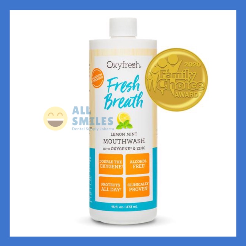 Obat kumur oxyfresh mouthwash fresh breath lemon mint cuci mulut mouth rinse oxygene zinc 89 473 ml