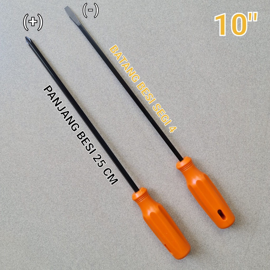 Obeng Panjang 10 INC Besi Segi 4 Gagang Orange