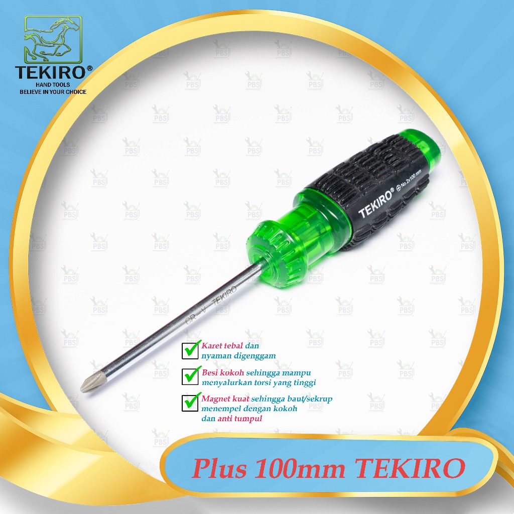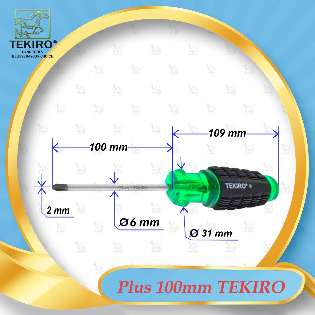 Obeng Plus gagang karet 100mm TEKIRO 100% ORIGINAL . Obeng Plus karet 100 mm