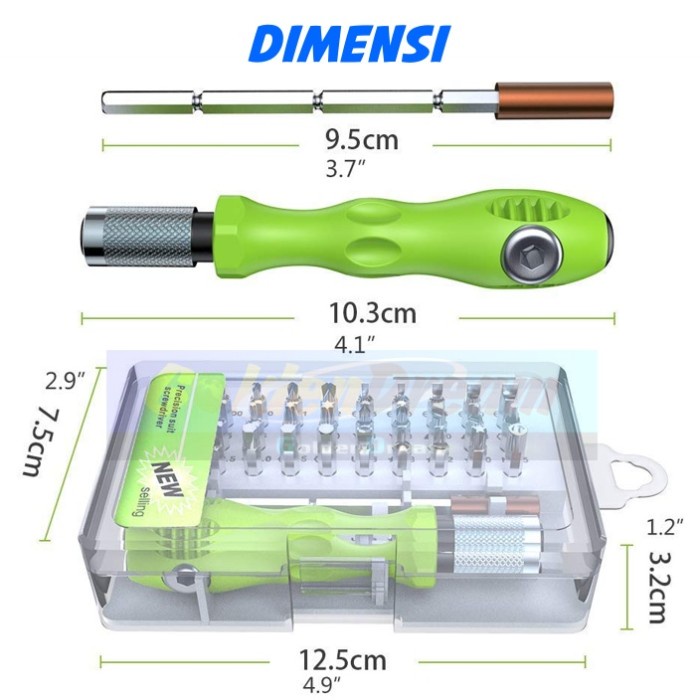 Obeng Set Hijau 32in1 Screwdriver Magnet Tool Service HP Komputer