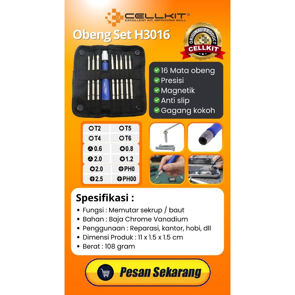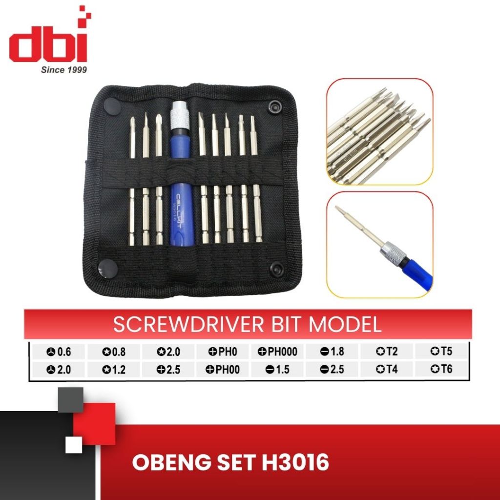 Obeng Set Magnetik CELLKIT H3016 (Philips Pozidriv Pentalobe Plus Minus Tripoint Hex)