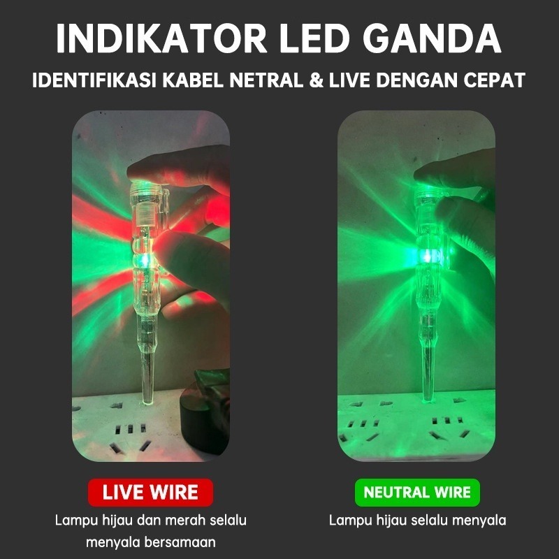Obeng Test Pen Minus Lampu Indikator Dual LED Merah Hijau / Tespen Sensor Detector Alat Pengecekan Kabel Listrik EZZY