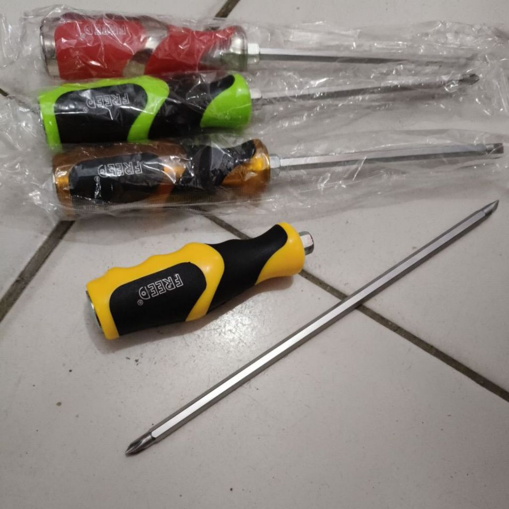 Obeng ketok 6 inch bolak balik bagus karet tebal +/- FREED obeng bolak balik obeng getok pahat obeng panjang obeng pahat