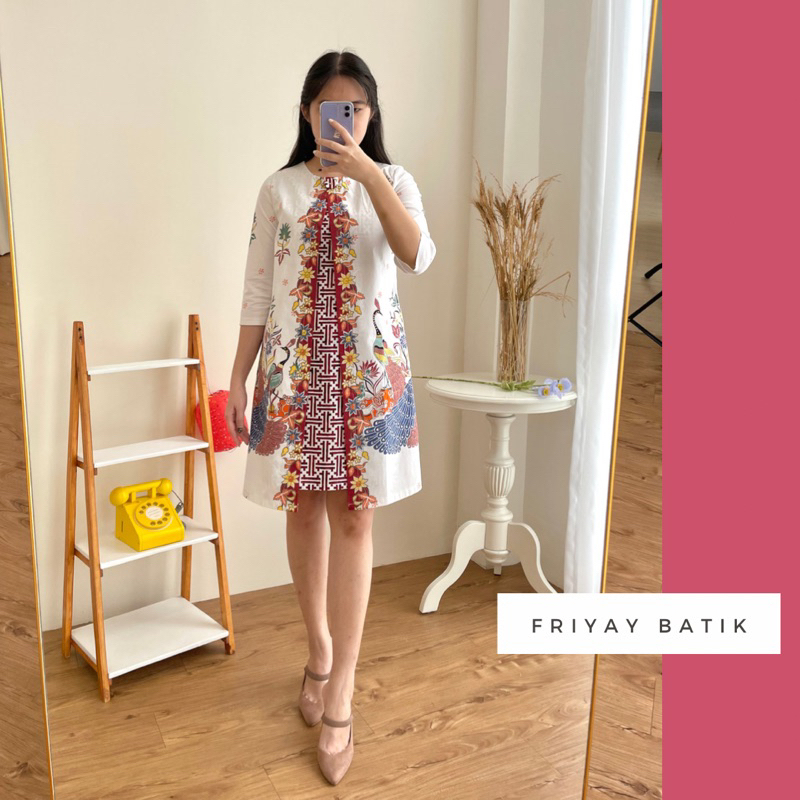 Ocean Dress Batik / Baju Terusan Batik Wanita Putih