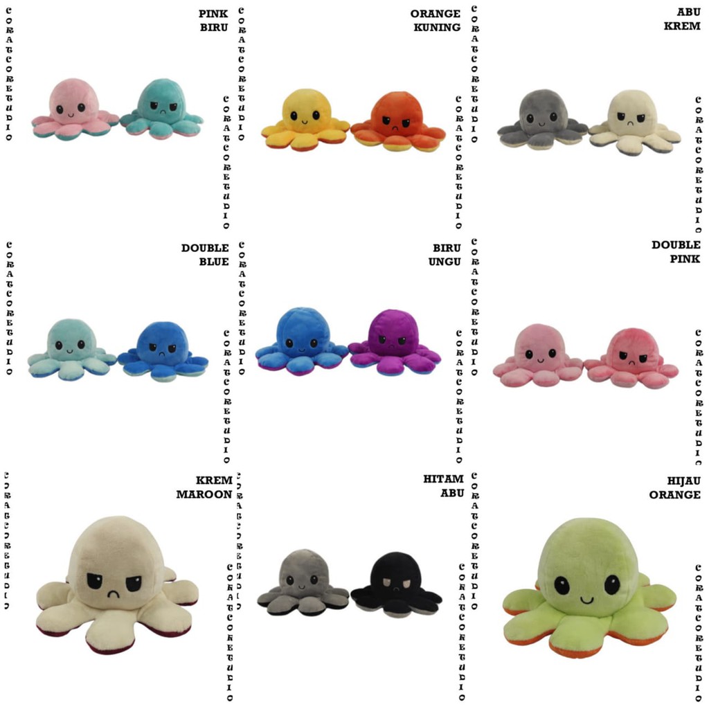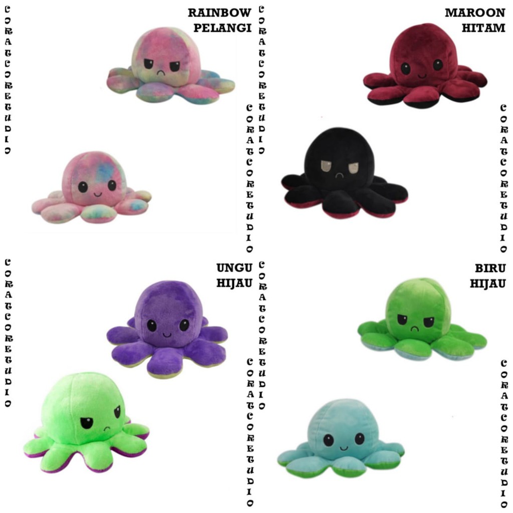 Octopus Doll Boneka Gurita Reversible Mood Warna RAINBOW PELANGI Tik Tok Cotton Ball Indonesia Indo