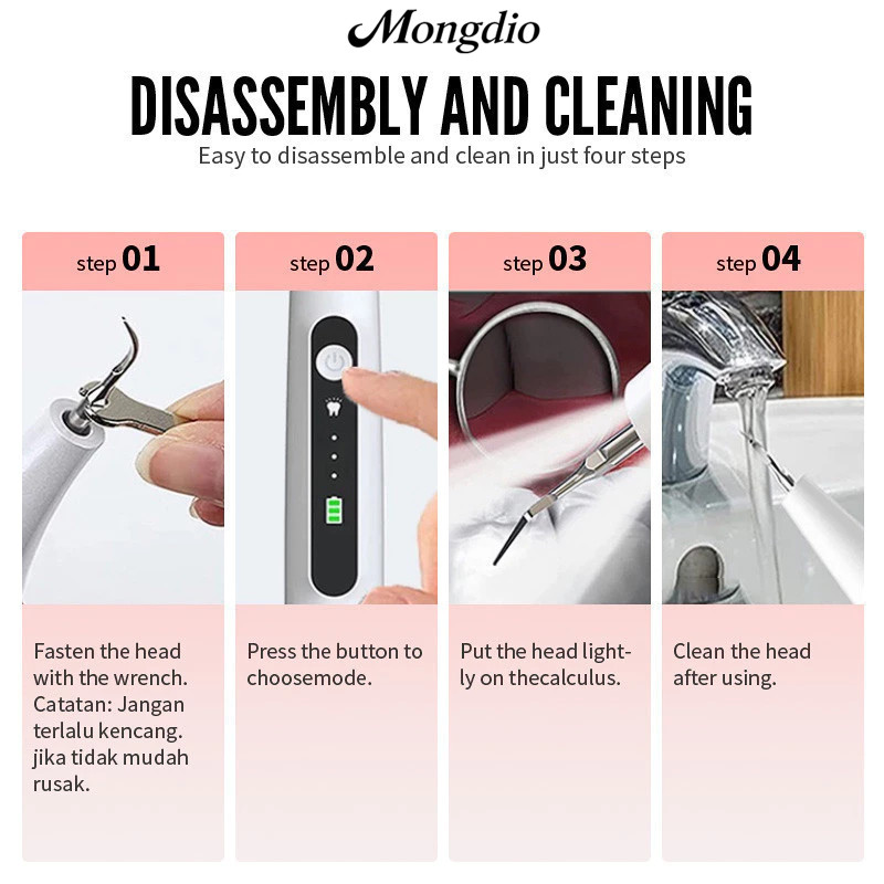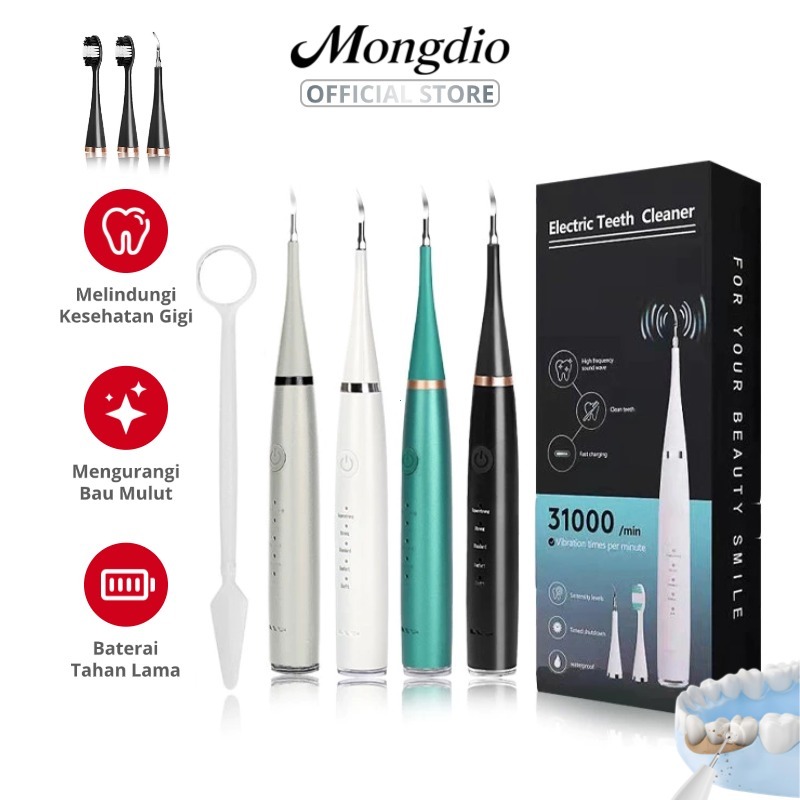 Mongdio Alat Pembersih Karang Gigi Ultrasonic - 5 Mode, Smart Auto Stop, 31000/min, dengan 2 Kepala Sikat & Dental Mirror, untuk Teeth Whitening di Rumah