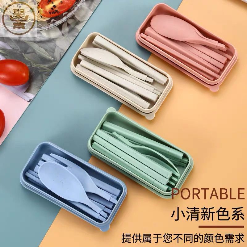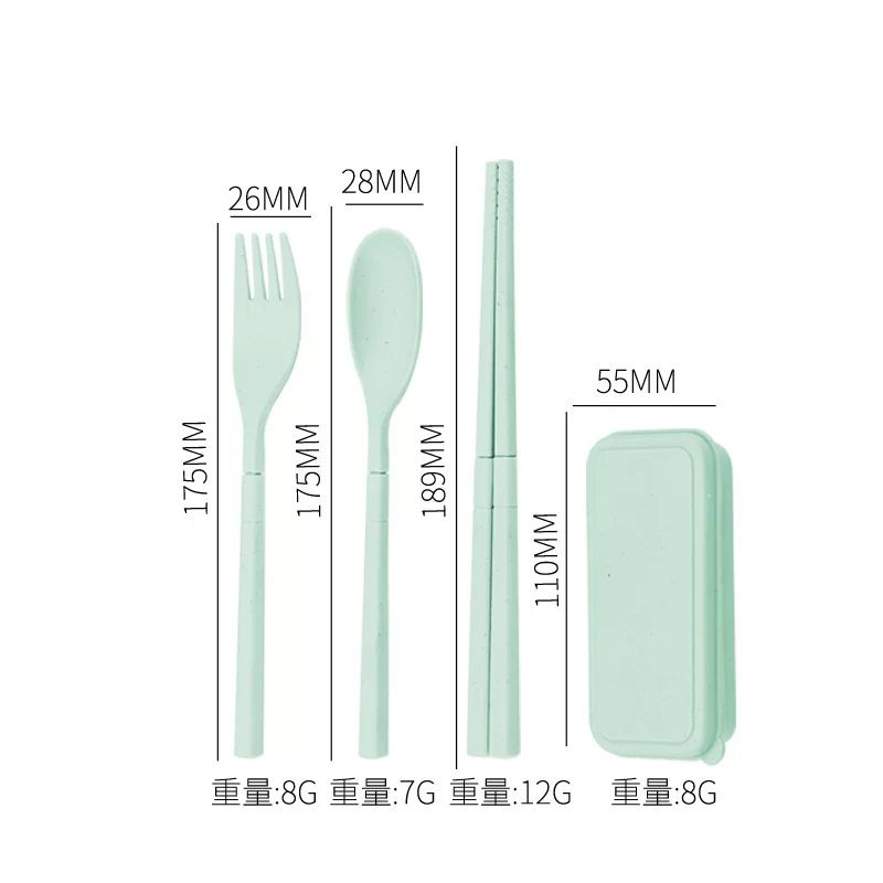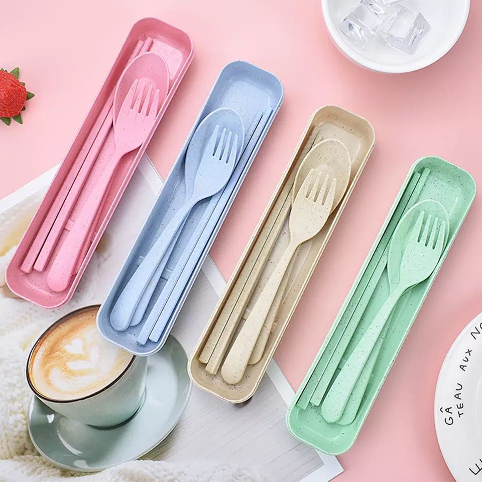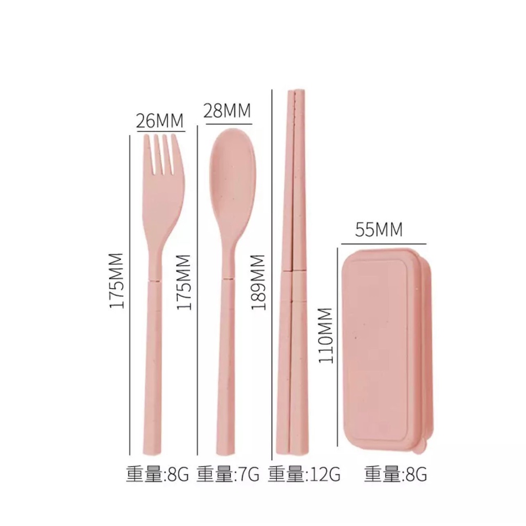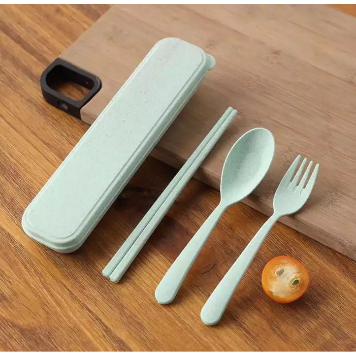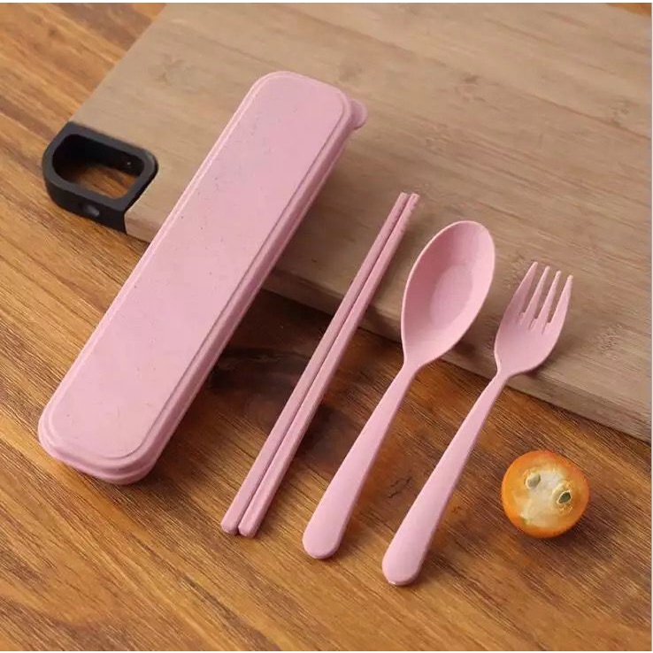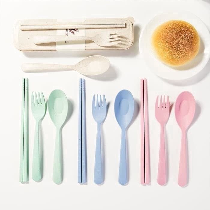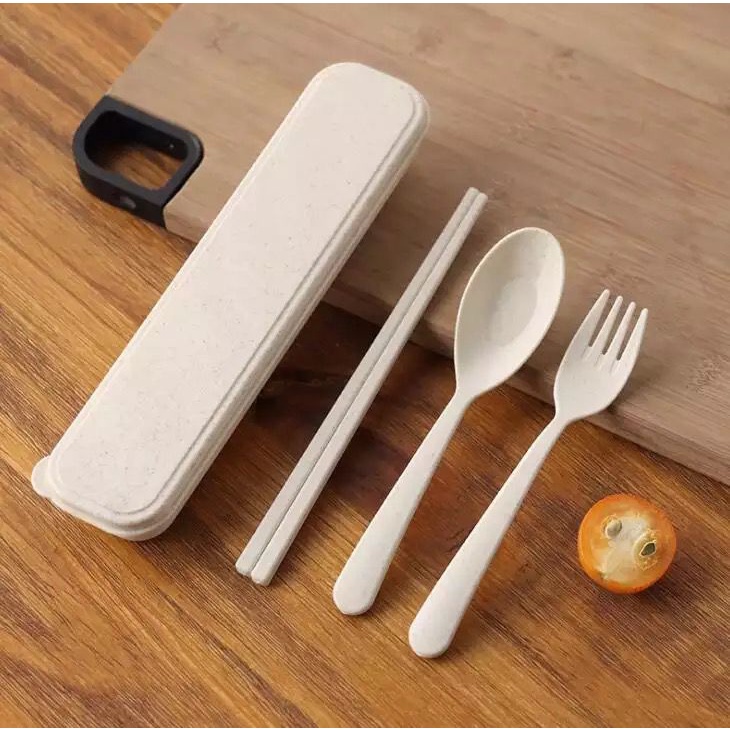 SENDOK GARPU SUMPIT 3IN1 / ALAT MAKAN PORTABLE SET BAHAN PLASTIK JERAMI GANDUM JRW0039