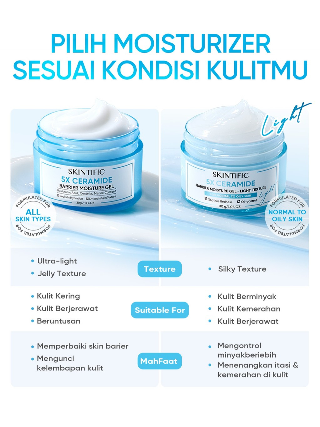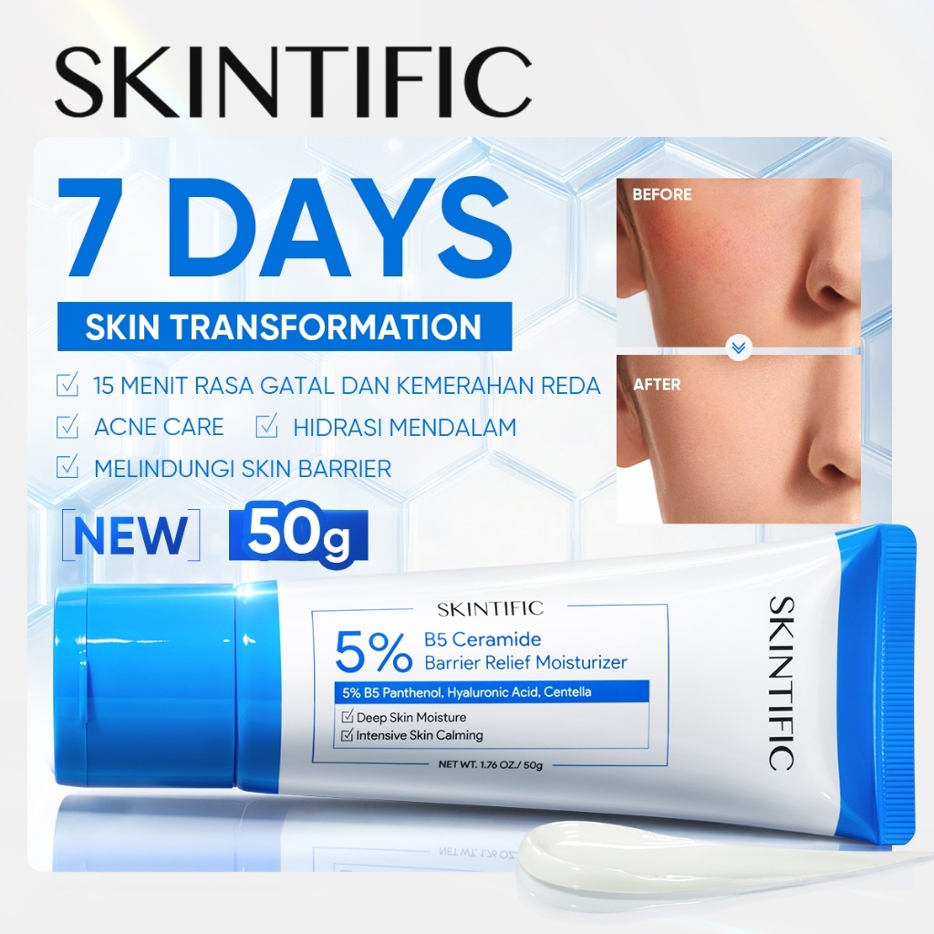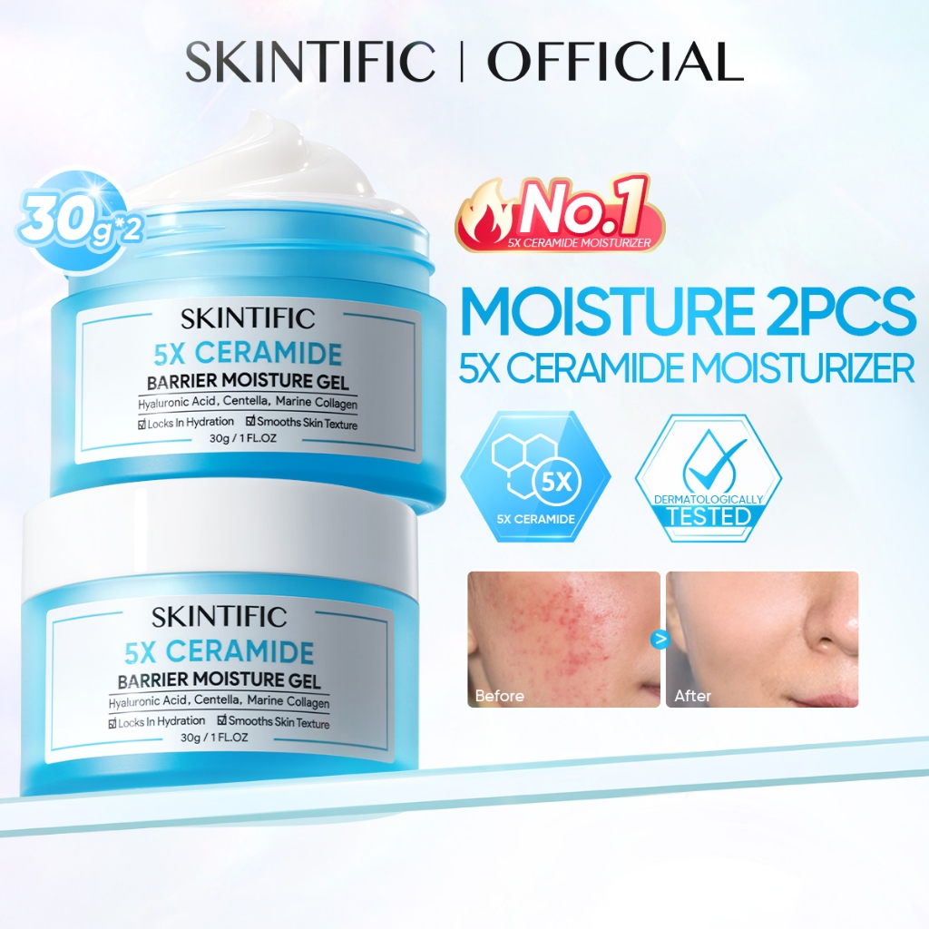 SKINTIFIC - 5X Ceramide Barrier Moisturizer Wajah/Badan Krim - Untuk Kulit Berjerawat/Kering/Sensitif/Berminyak/Iritasi Ringan - Repair/Sooth/Moisturize/Calming - Day & Night Facial Moisturizer