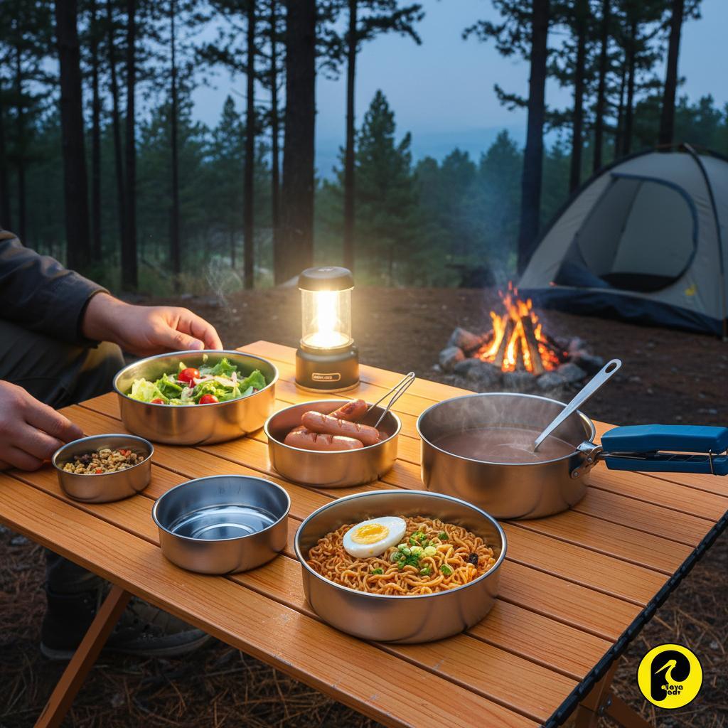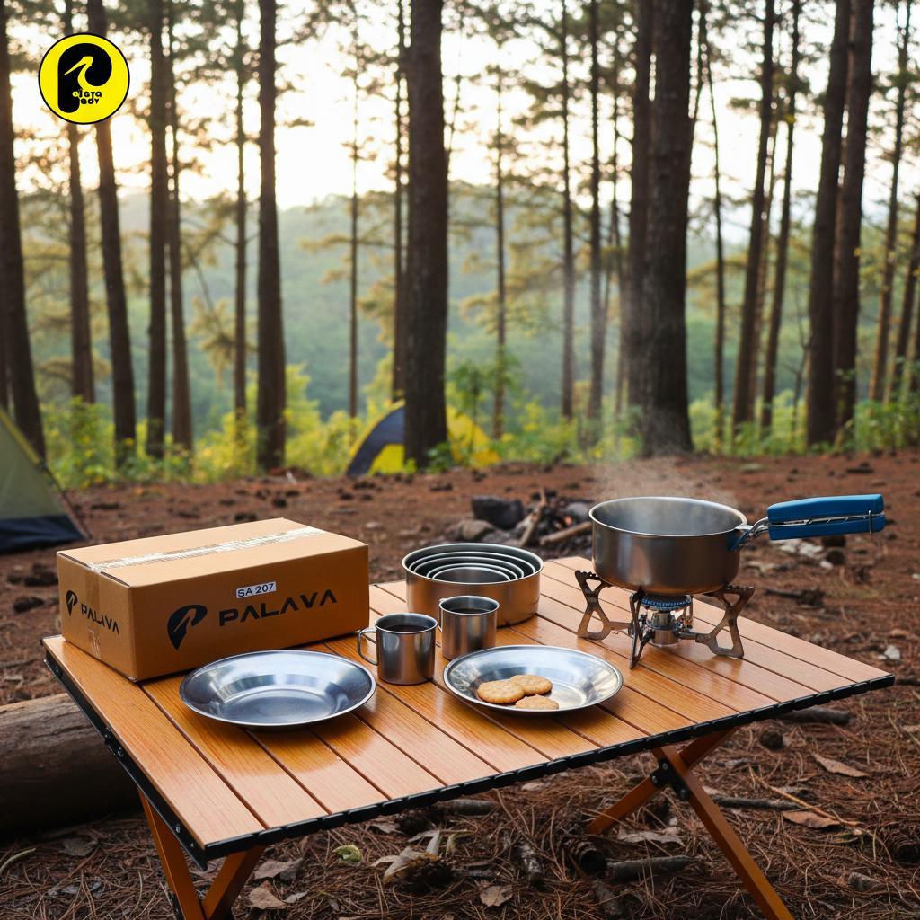 cooking set SA207 camel alat masak outdoor stainless nesting 8 in 1