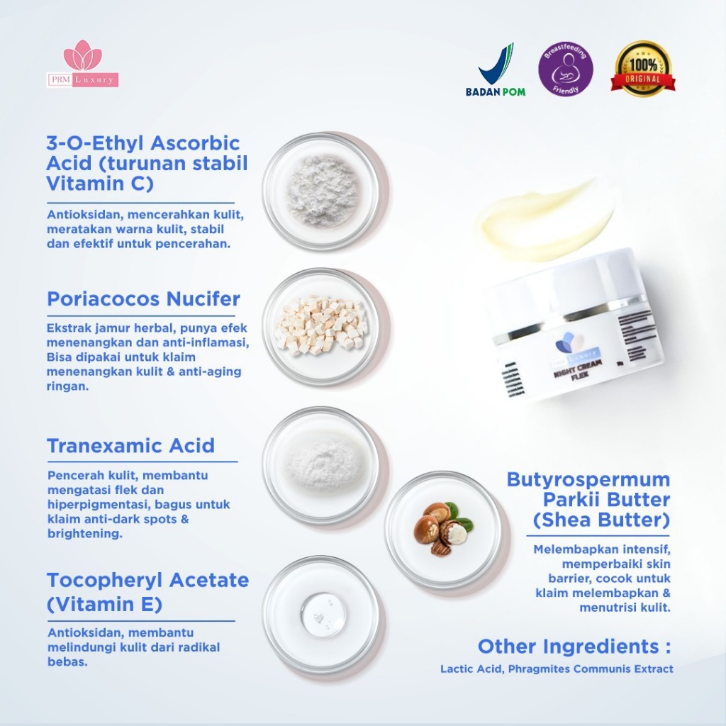 Night Cream Flek PRM Luxury – Krim Malam untuk Flek Hitam & Kulit Kusam – Glowing Aman Saat Tidur