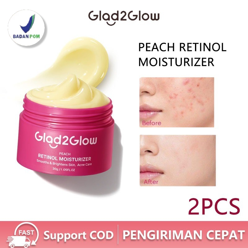 Glad2Glow Peach Retinol Moisturizer Pelembab Anti Penuaan Penghalang Kulit Mencerahkan Flek Hitam Mengurangi kerutan mencerahkan warna kulit menghaluskan kulit mengecilkan pori-pori yang membesar dan melembabkan wajah Krim Pelembab