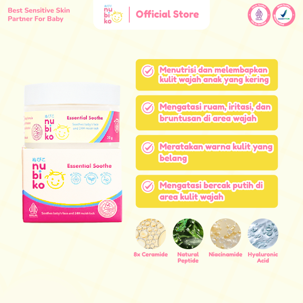 Nubiko Moist 2 pcs Essential Soothe 30 gr 8x Ceramide Niacinamide Moisturizer Face Cream Anak