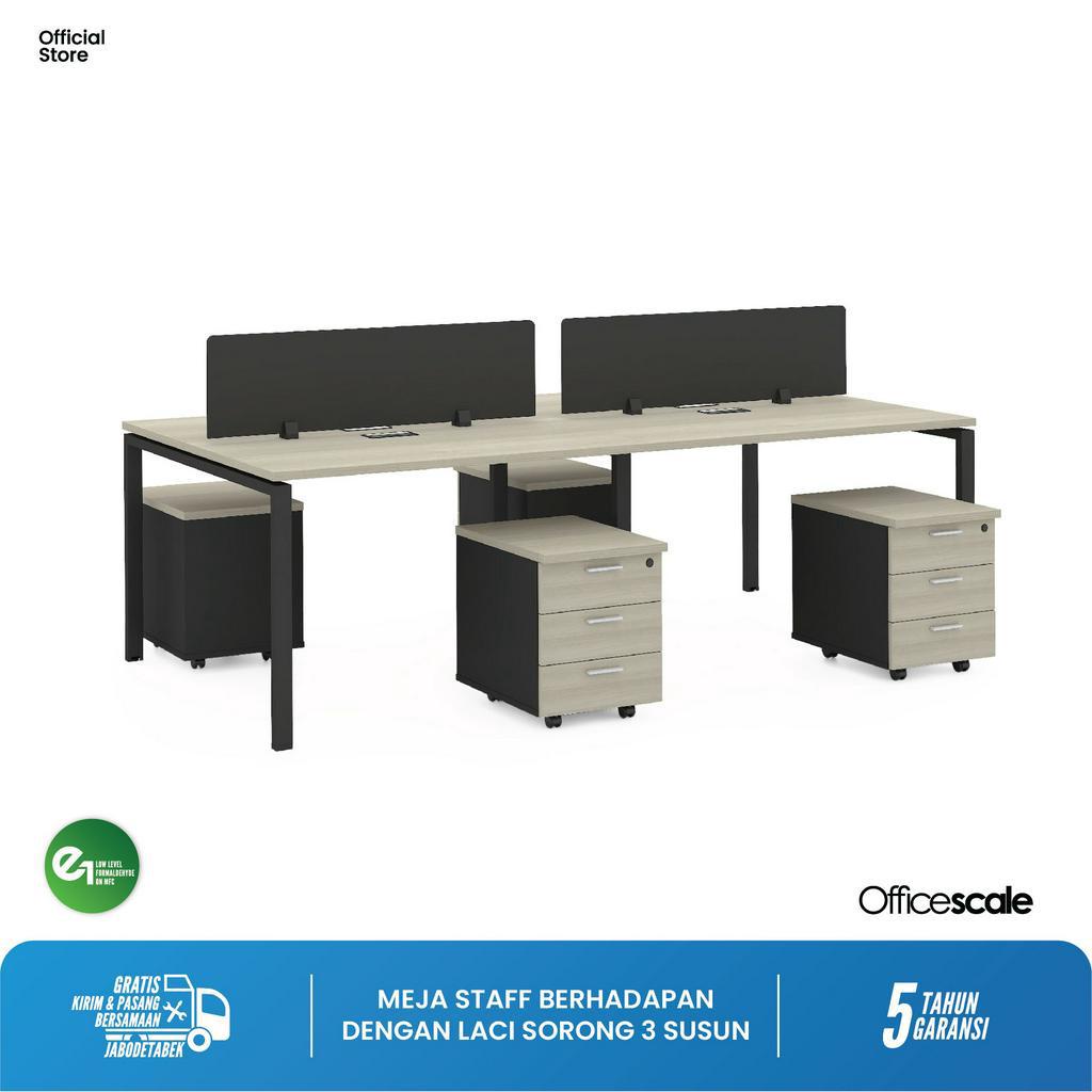 Officescale Meja Kerja Kantor Berhadapan 4 Orang + Pedestal