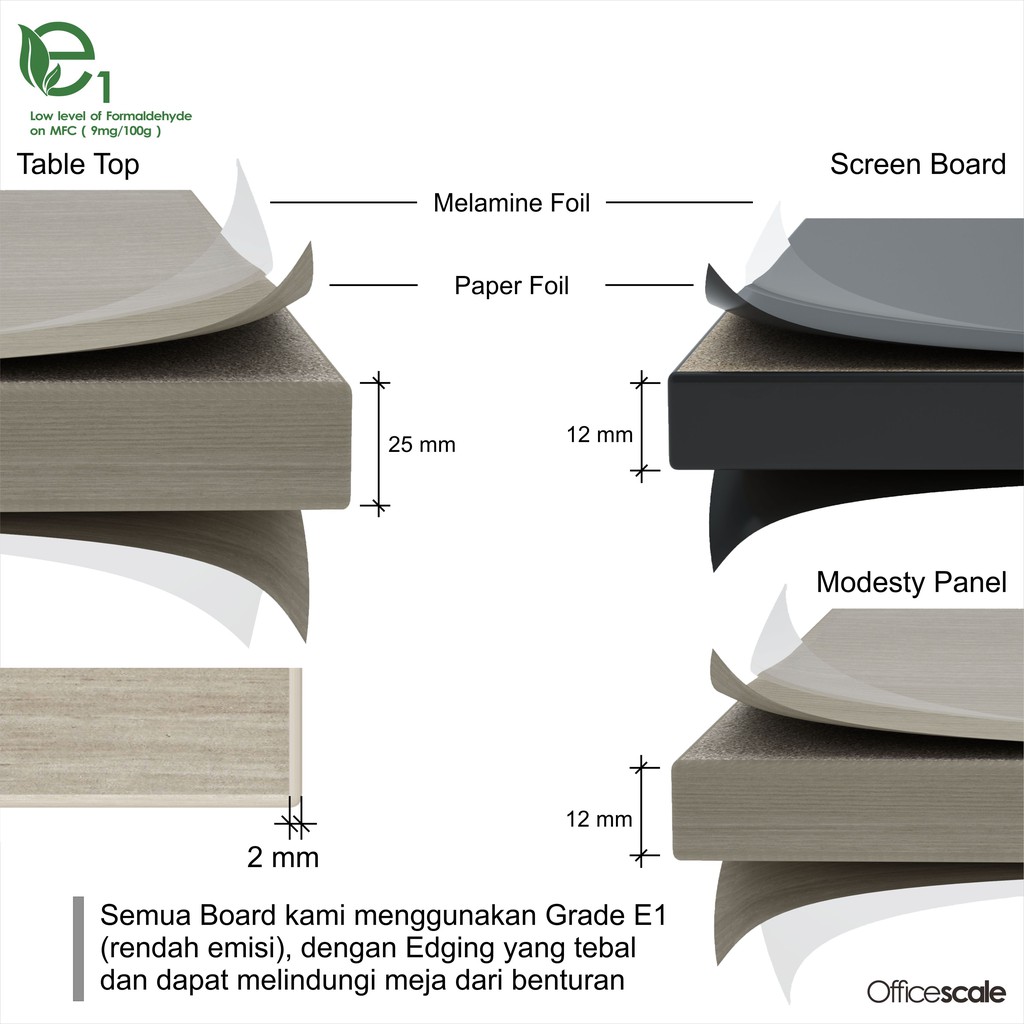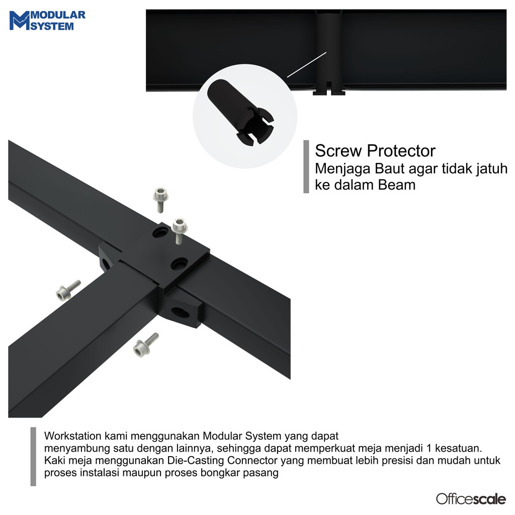 Officescale Meja Kerja Kantor Penyambung Berhadapan 2 Orang +Panel Sekat