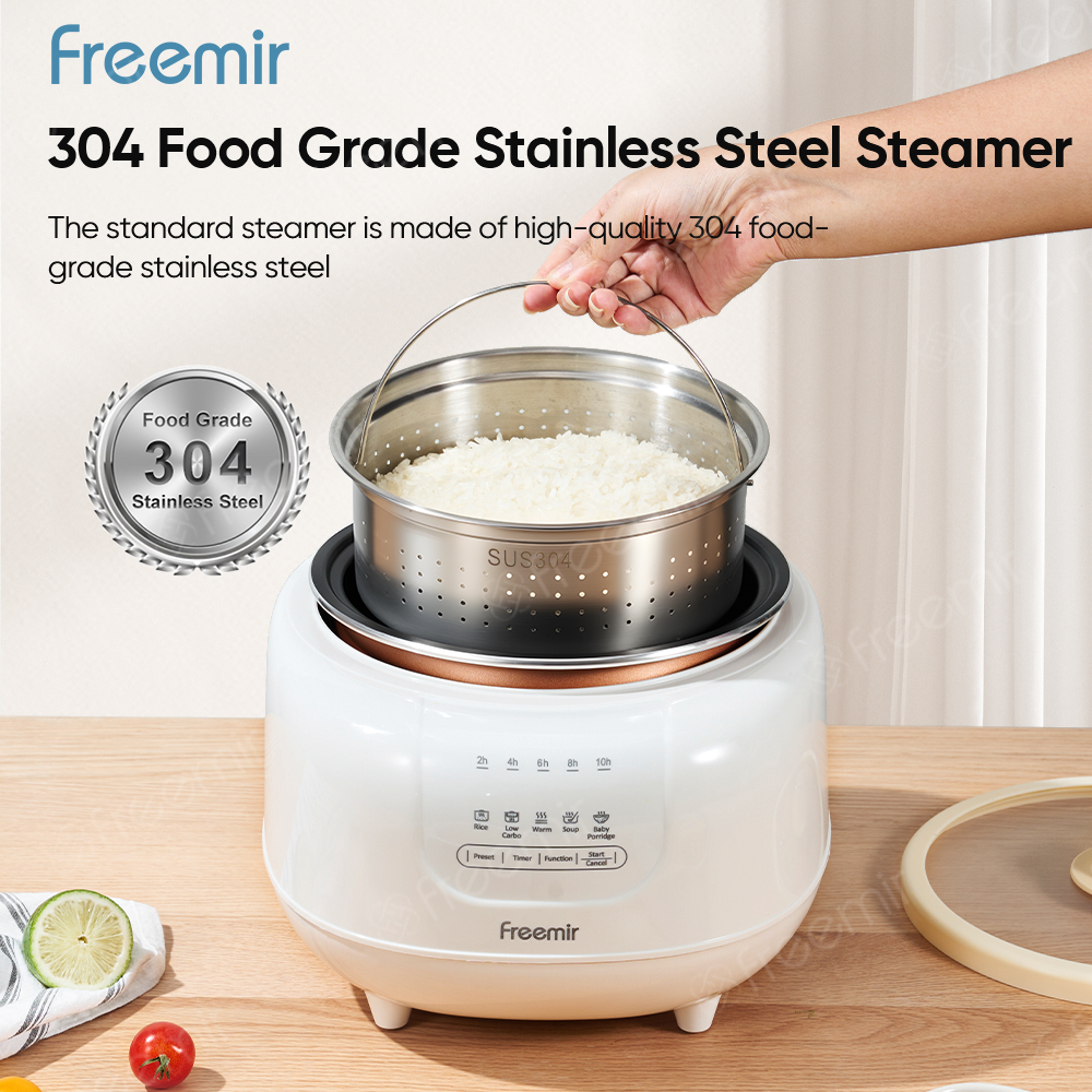 Official freemir Rice Cooker Digital 1.2L Low Sugar – Magic Com Mini MPASI Bayi Slow Cook dengan Steamer 304