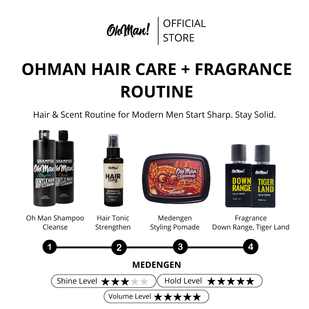 Oh Man! Pomade Pria Medengen 85gr Wax Based Strong Hold | Pomade Tahan Air Berkilau Mudah Diatur
