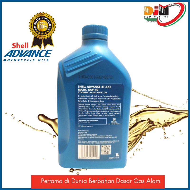 Oil Shell Adance synthetic based AX7 MATIC 10W40 1L (MATIC OIL) Untuk Motor Matik Original