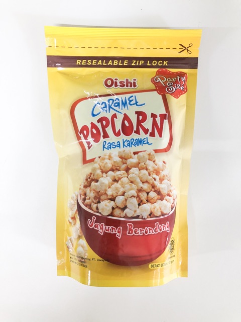 Oishi Popcorn Caramel / Coklat 100gr Zip lock