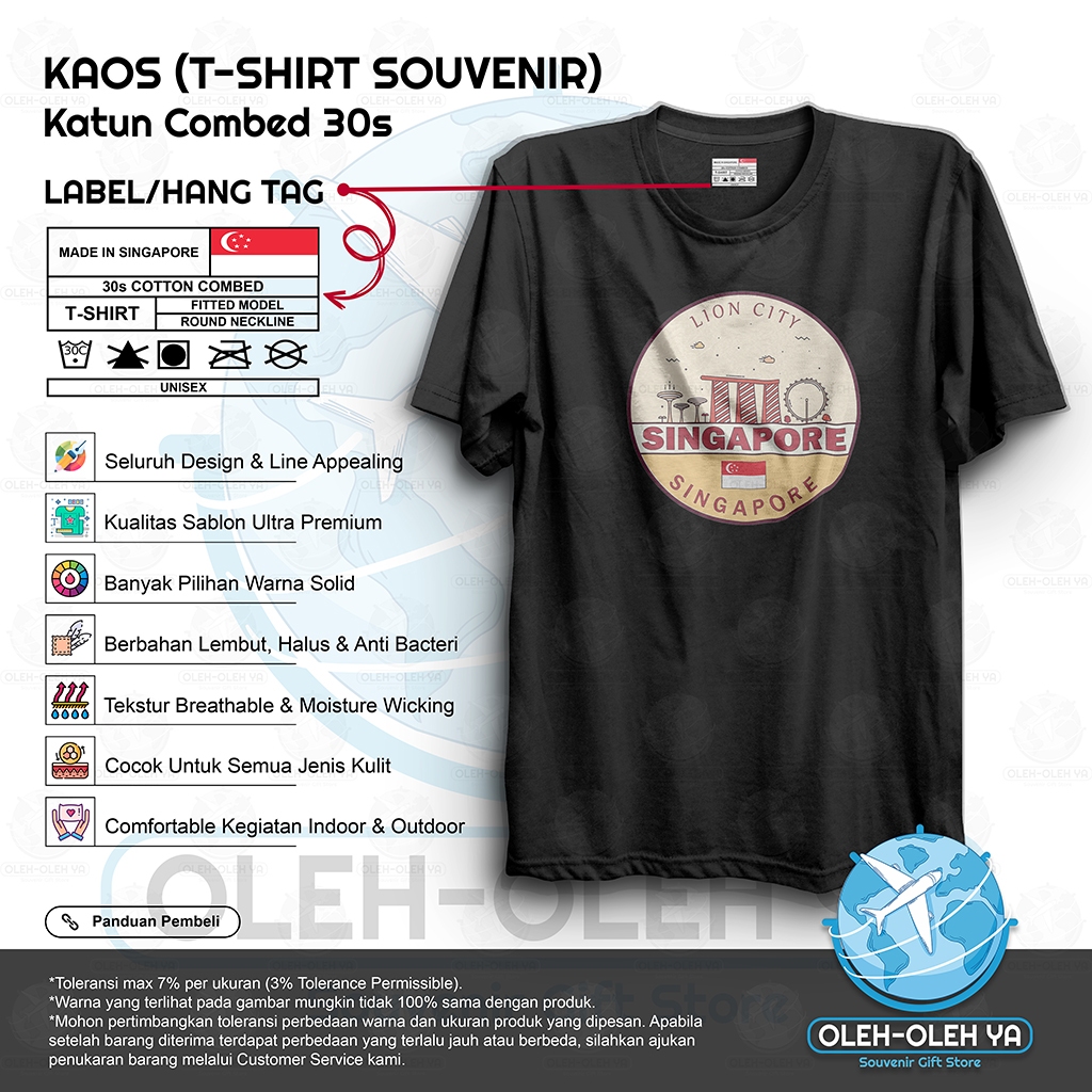 Oleh Oleh YA Souvenir Kaos Singapura Oleh Oleh Kaos Singapura T-Shirt Souvenir T-Shirt Singapura Souvenir Oleh Oleh Baju Souvenir Lion City Singapore Landmark Merlion Singapore Travel Tour Singapore Series O2Y-SG26