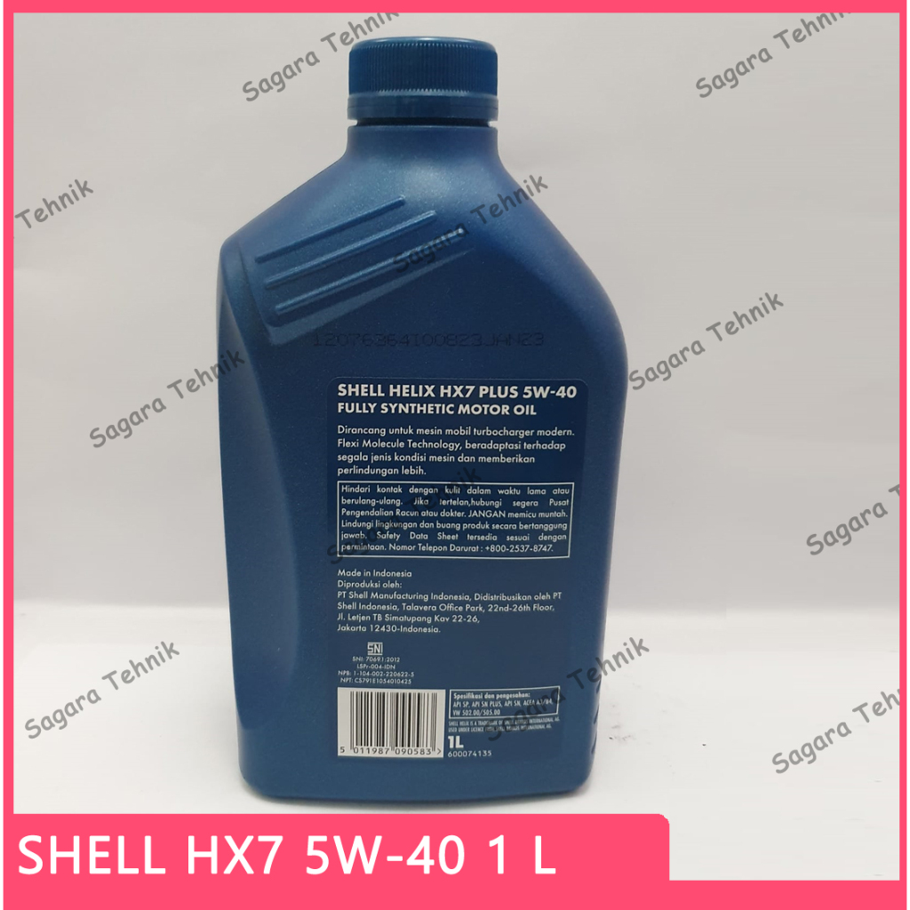 Oli Mobil Shell Helix HX7 Plus SAE 5W-40 5W40 1 L Botol Bensin Diesel Solar Gasoline Tambahan 1Liter