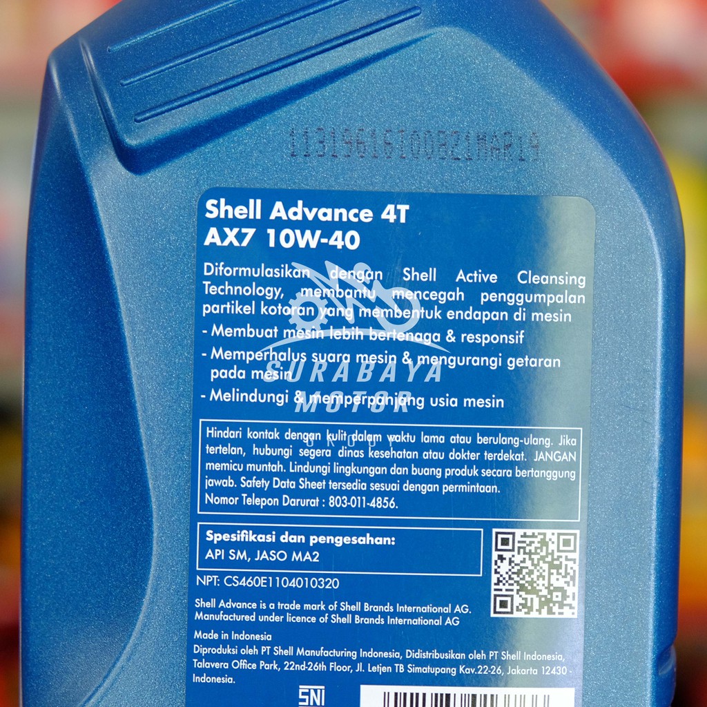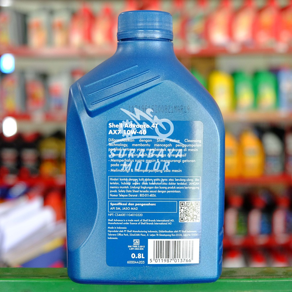 Oli SHELL AX7 0,8L 4T Sae 10W-40 800ml 0,8 L 800 ml Motor ORIGINAL ORI ASLI Shell Advance