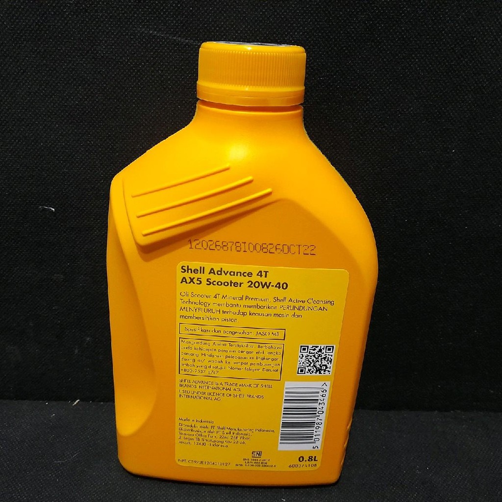 Oli Shell Advance AX5 Matic 20W-40 0.8L Asli Original Shell