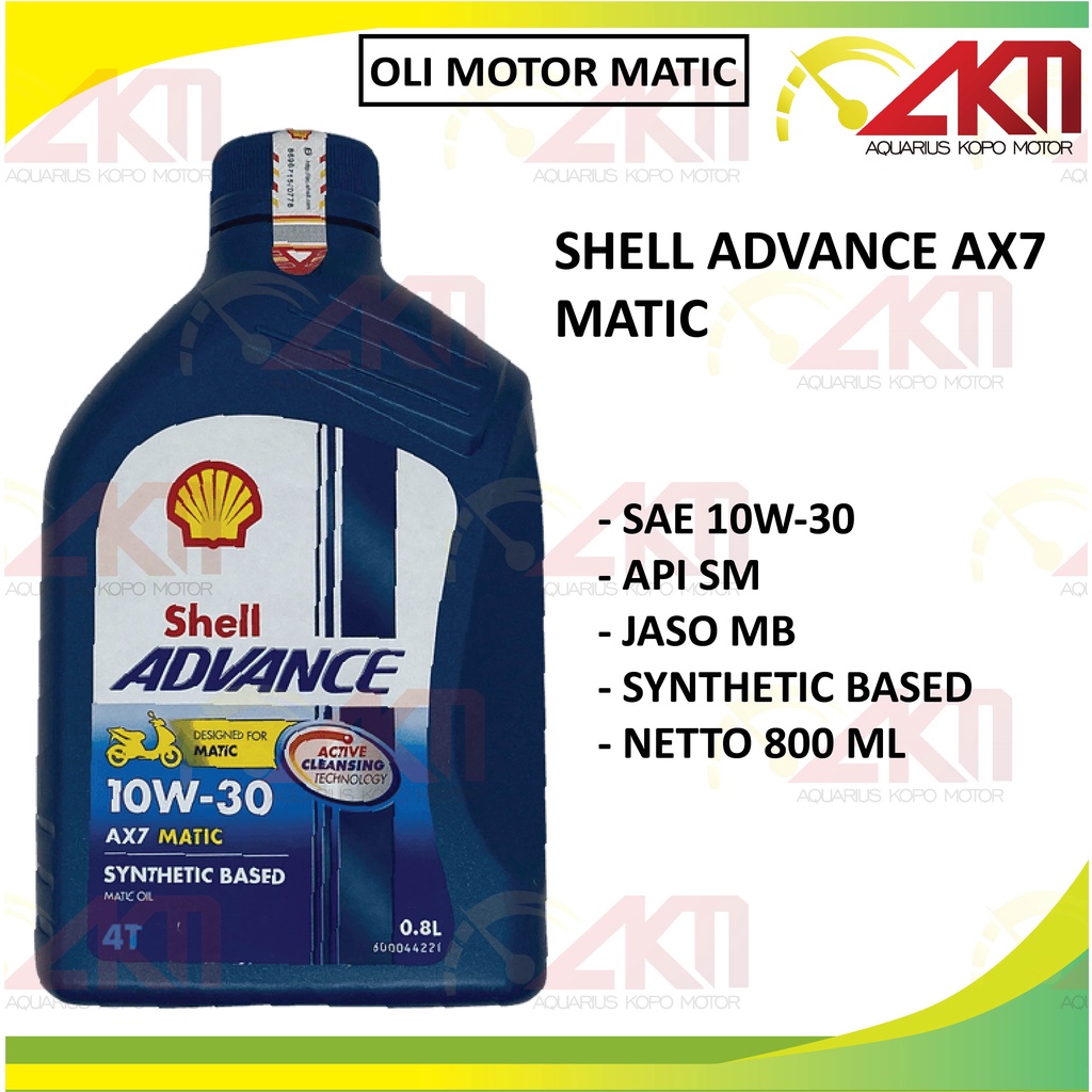 Oli Shell Advance AX7 Matic AT Motor Matic 4T 10w30 API SM 800ml 0.8L