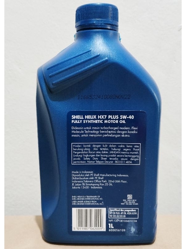 Oli Shell Helix HX7 Plus SAE: 5W-40, Oli Motor