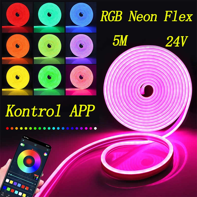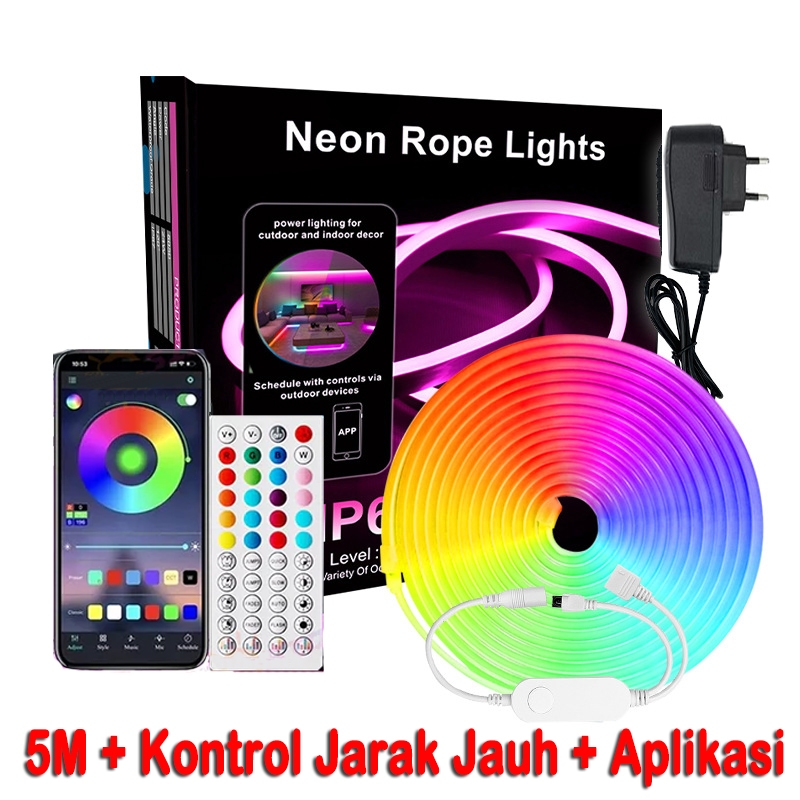 Olifedo Lampu Neon Flex Running RGB Remote 5M Lampu warna warni LED Running RGB App Control Sensor Tahan Air