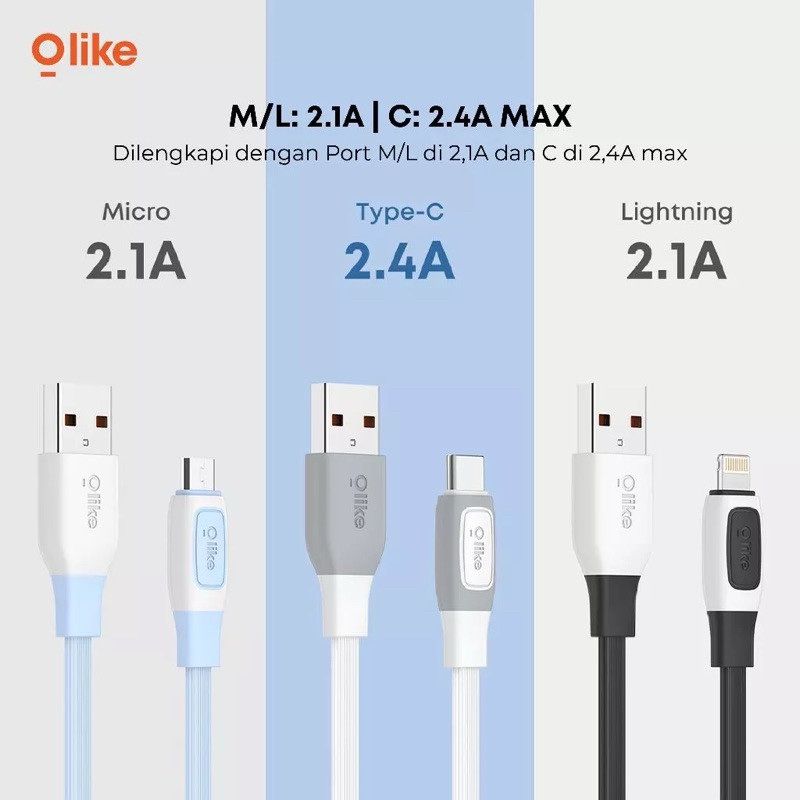 Olike D307 Kabel Data Pipih Micro USB / Type-C / Lightning Original