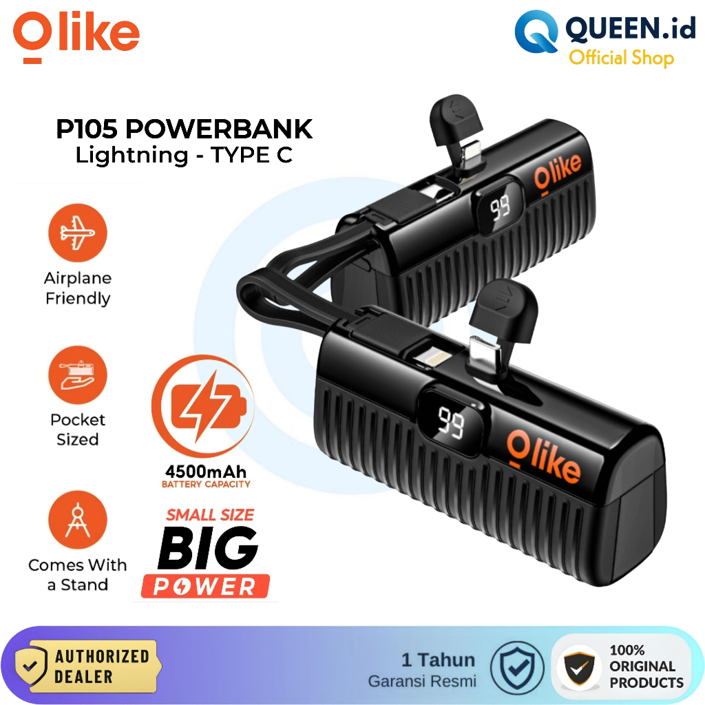 Olike P105 Mini Powerbank 4500mAh Portable Port Dual Charging LED Power Display USB TYPE C Lightning