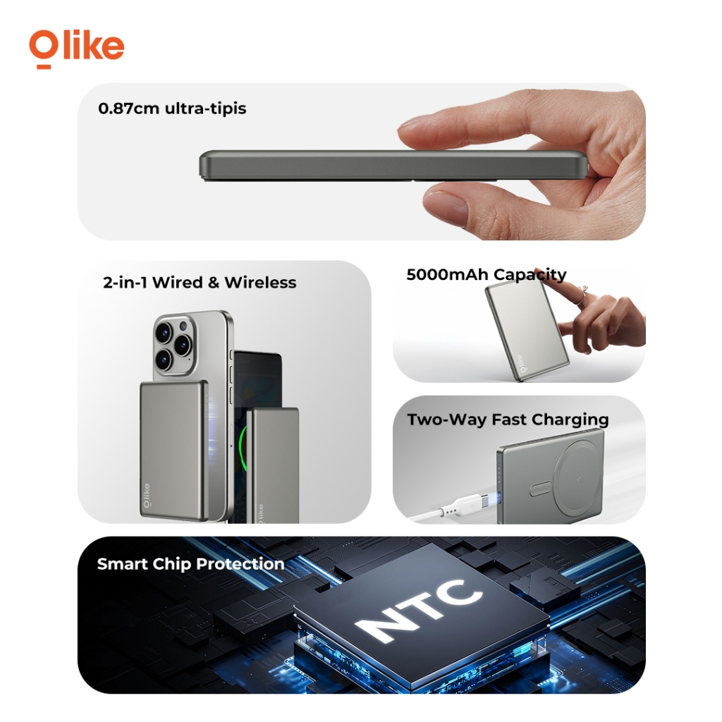 Olike P300 Power bank 5000mAh | Slim & MagSafe Wireless Magnetic Charging Powerbank Olike 5000mAh