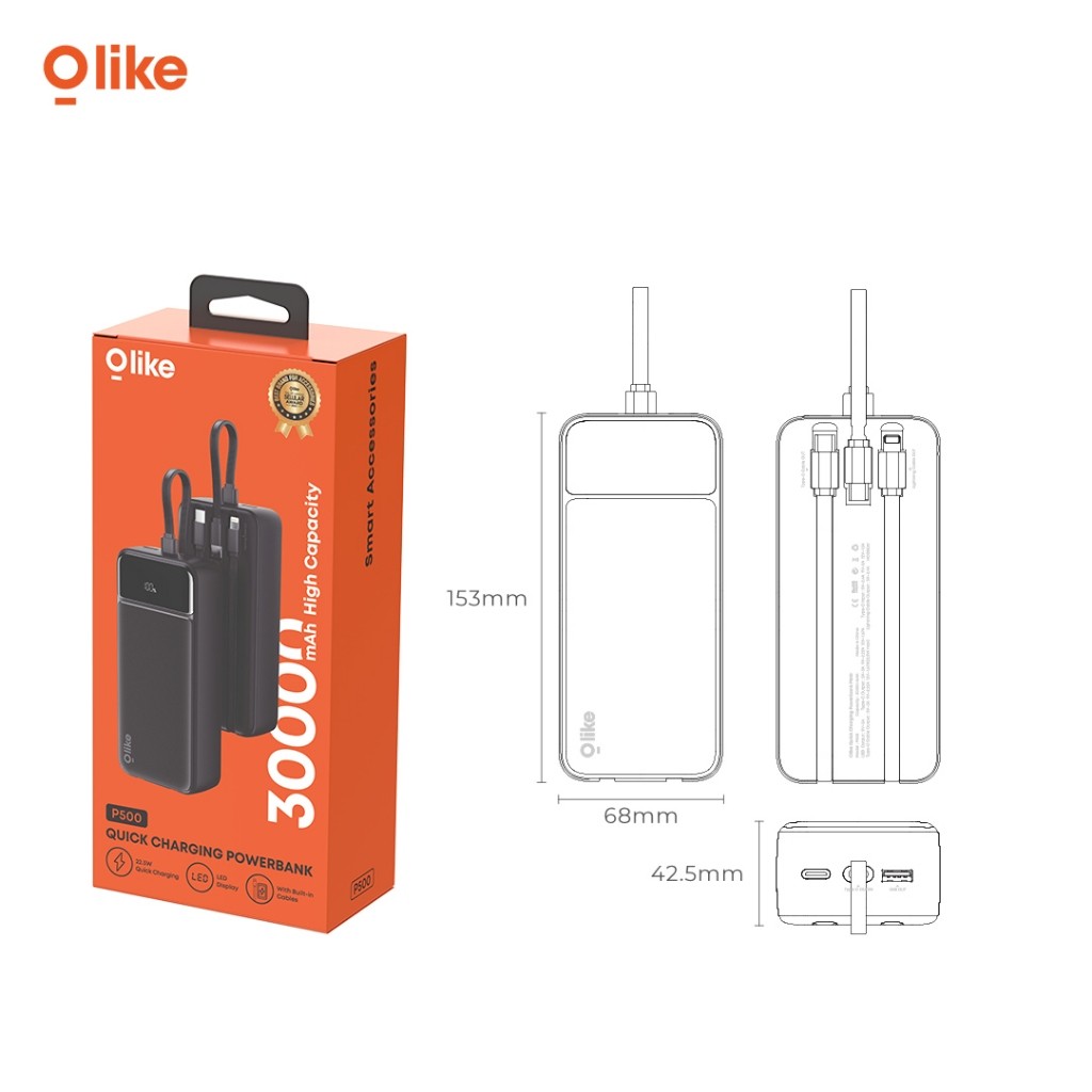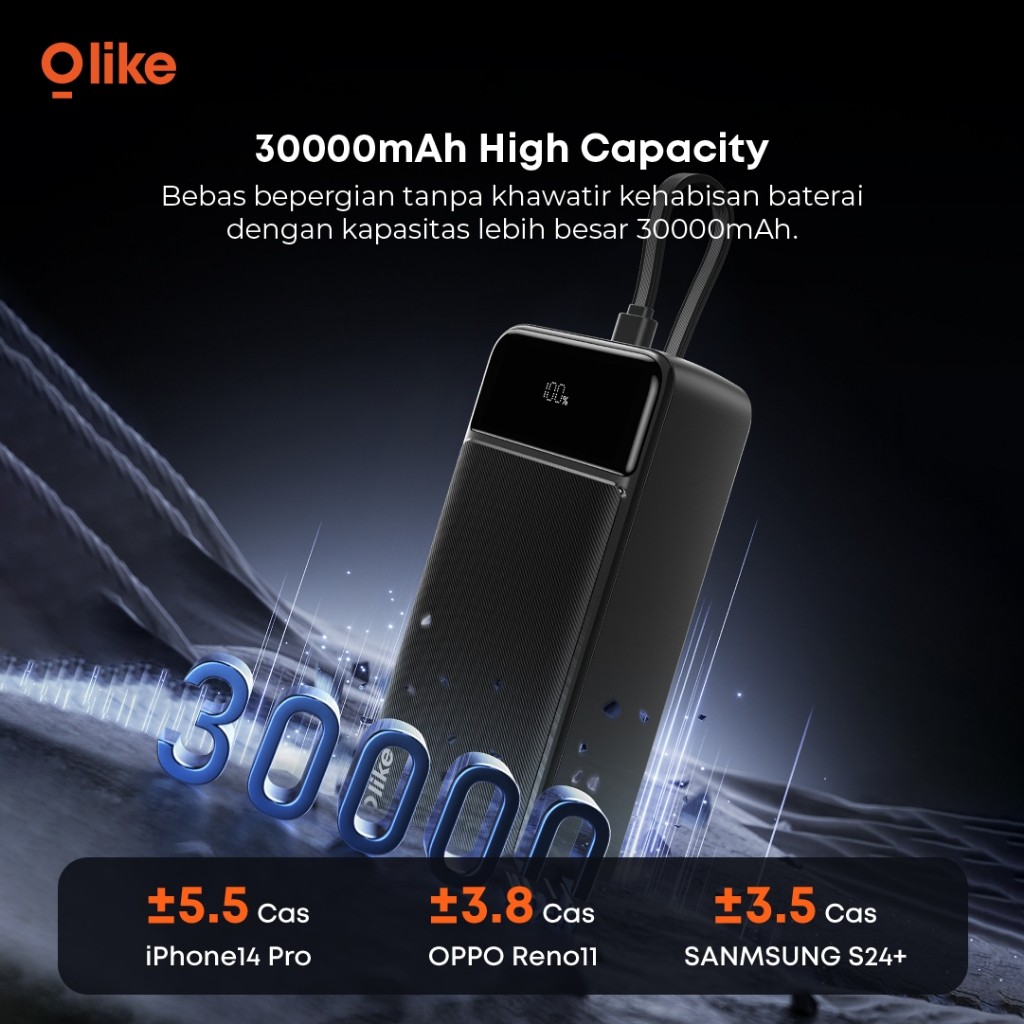 Olike Powerbank P500 30000mAh 22.5W Fast Charging Power Bank QC 4 Kabel Lengkap Pengecasan Cepat