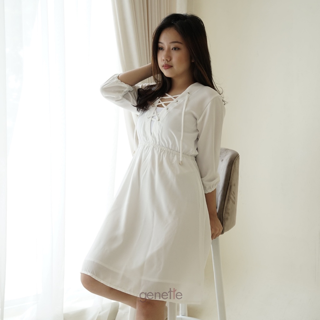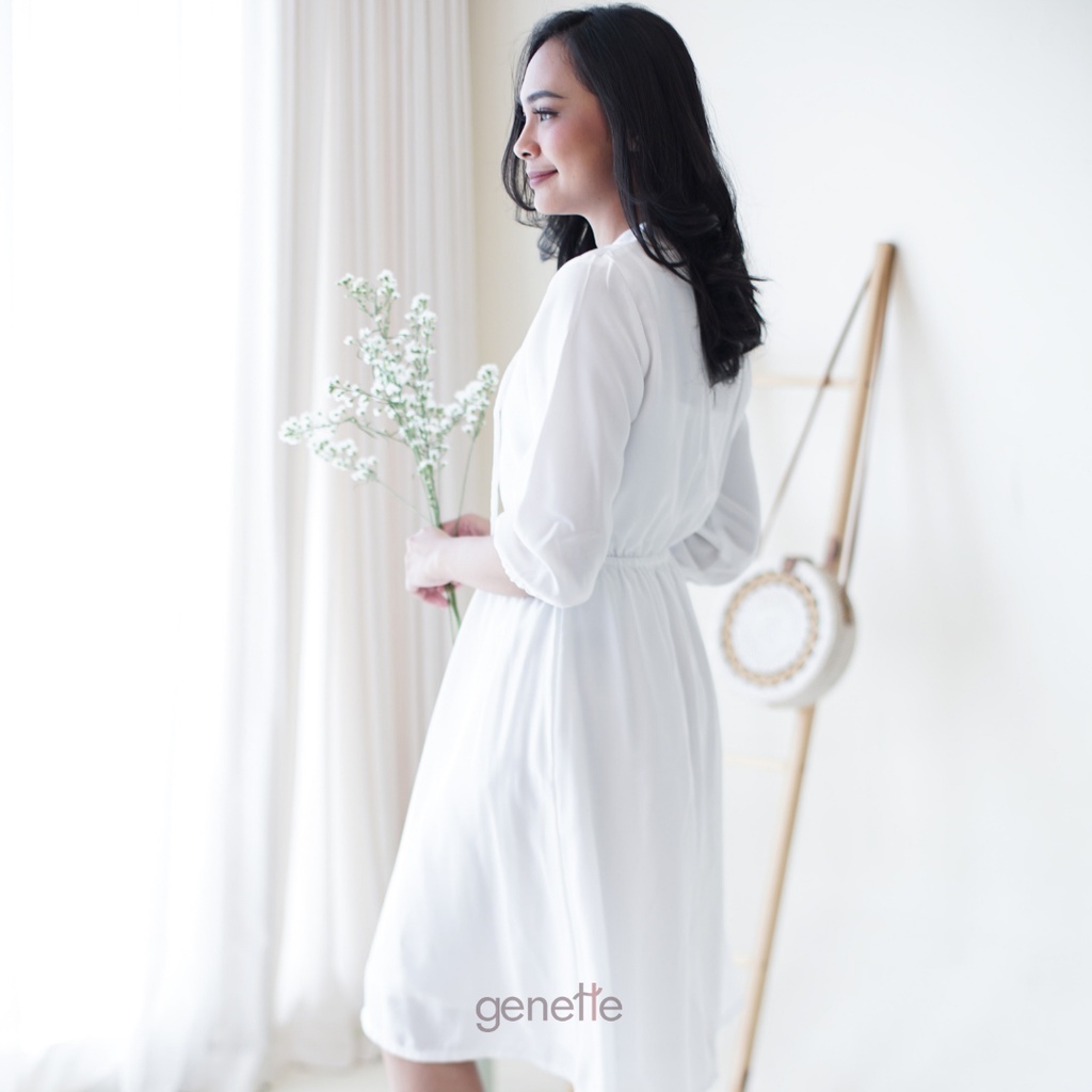 Olivia Dress korea Dress Putih Formal Semiformal Wanita Simple dress pesta dress kerja kantor panjang midi lengan panjang nyaman feminim