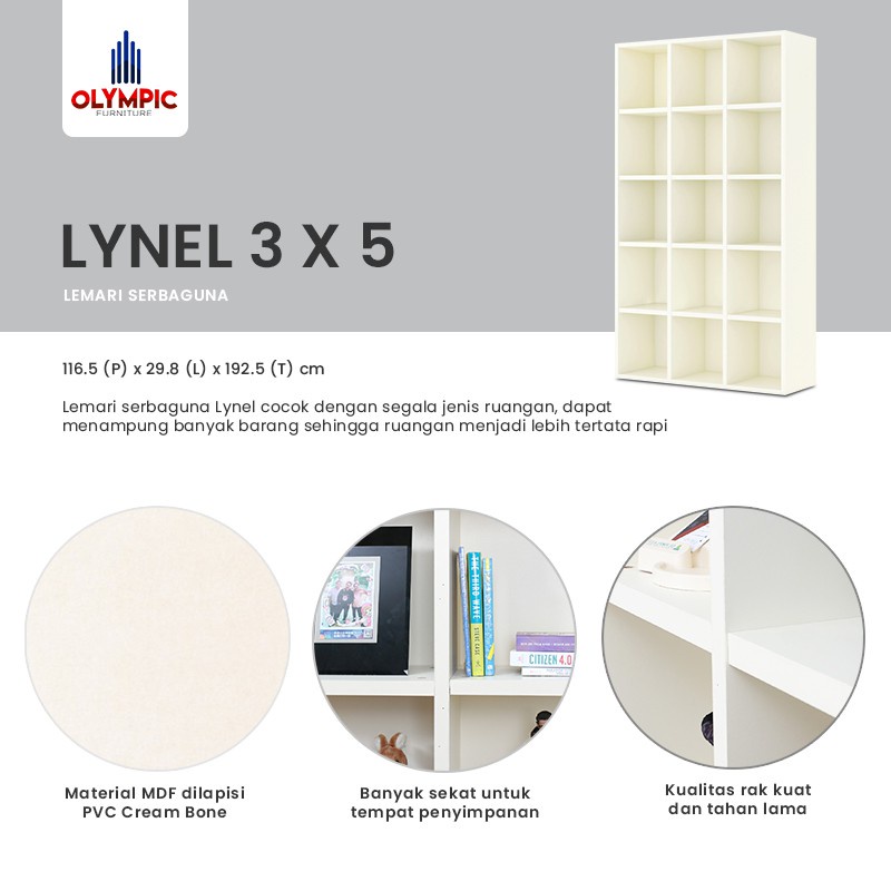 Olympic Rak Buku Rak Serbaguna Rak Multifungsi Rak TV LYNEL 3X5 KHUSUS BOGOR KURIR TOKO