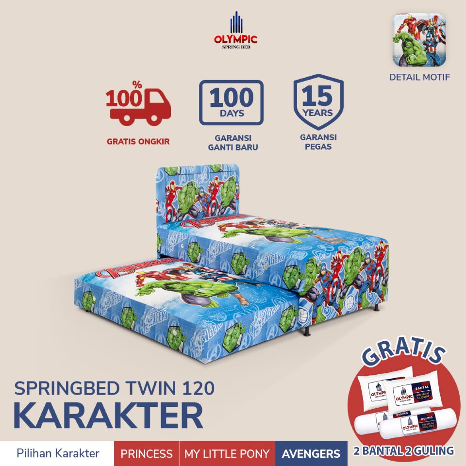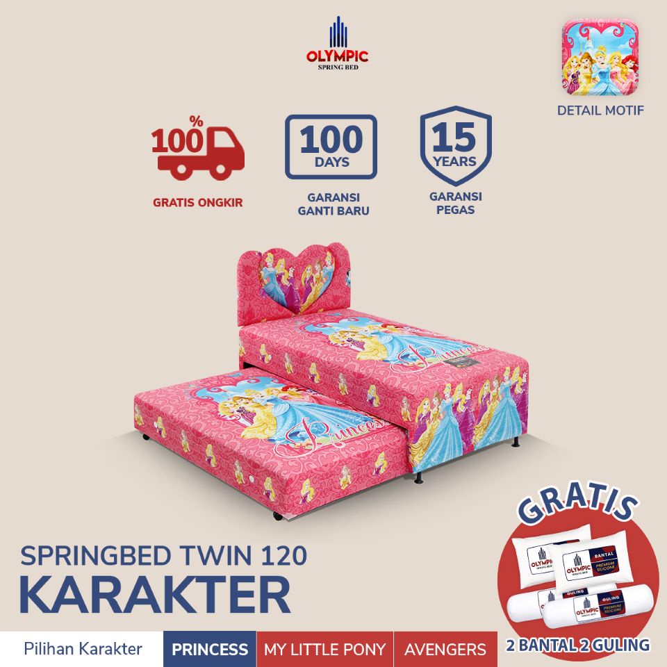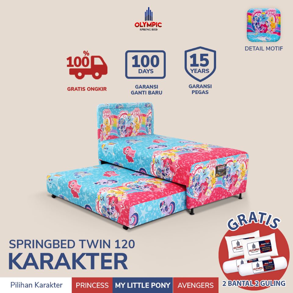 Olympic Tempat Tidur Springbed Anak / Kasur Anak / Kasur Minimalis / Twin Bed Karakter FREE Bantal Guling / HANYA JAWA TIMUR