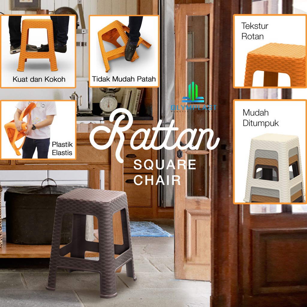 MORE Olymplast Kursi Bakso Motif Rattan Square Chair