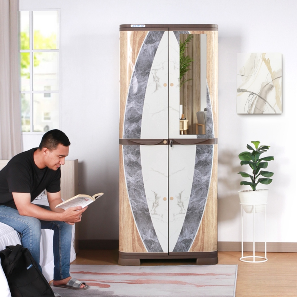 Olymplast SCOC 2P Lemari Penyimpanan Pakaian Plastik 2 Pintu / Motif Marble